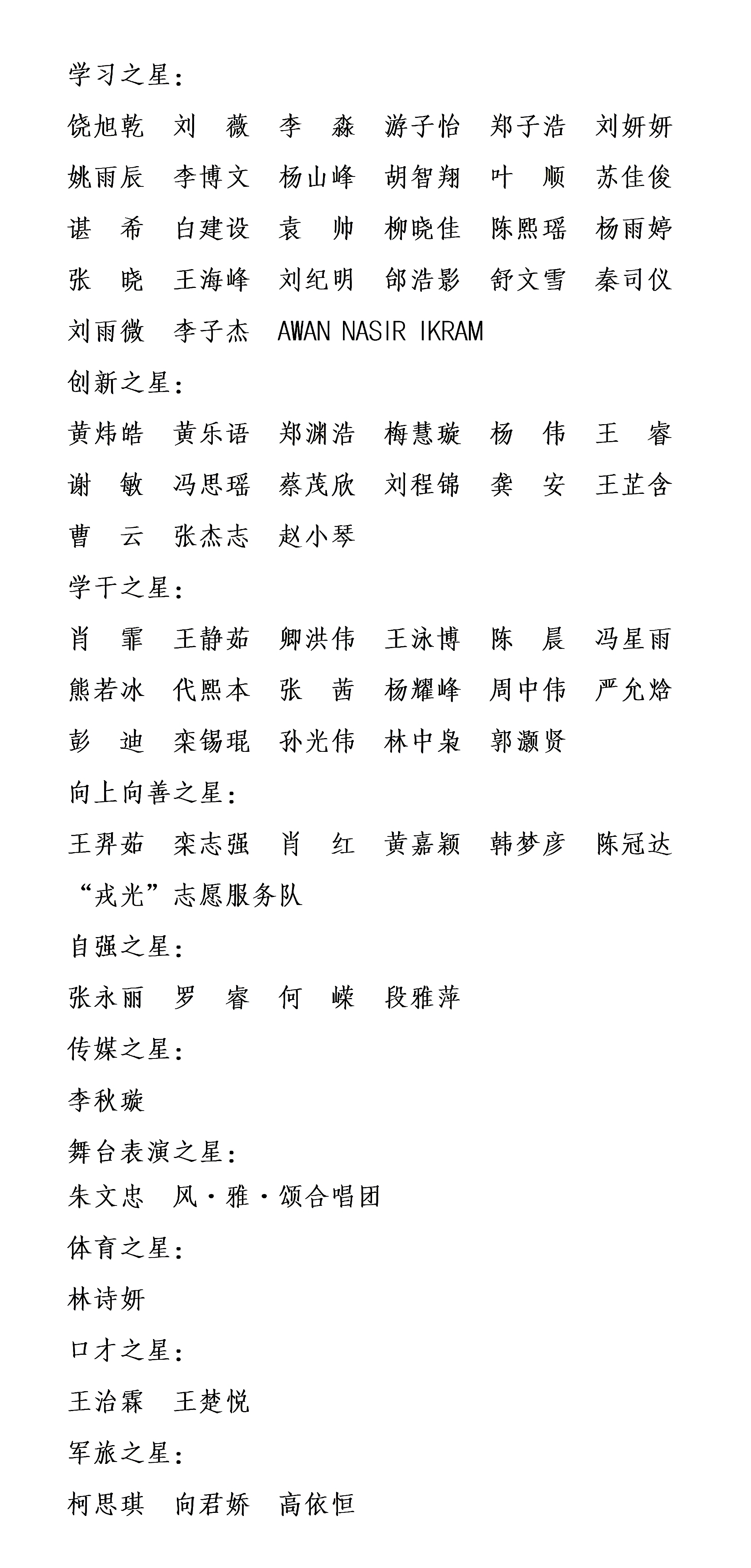 第二十届(2026)“长大之星”人员名单如下(排名不分先后):